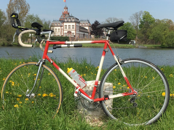 Wie sah es beim Material aus?? Nicht viel besser als der körperliche Zustand. Schwimmen: Badehose und Pullboy – vollkommen ausreichend, dachte ich. Radfahren: Immerhin ist ein Rennrad vorhanden. Pinarello Stahlrahmen, Shimano DuraAce Ausstattung, in den 90ern war das Rennrad absolute Spitzenklasse – einfach kann jeder 😉 Laufen: Laufschuhe New Balance NB1080 und Klamotten